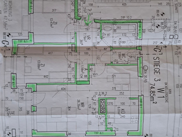 Weiters verfügt die Wohnung über eine Terrasse (7.72m²), einen Garten (36.33m²), Keller (16.32m²) und ein Carport (11.50m²).